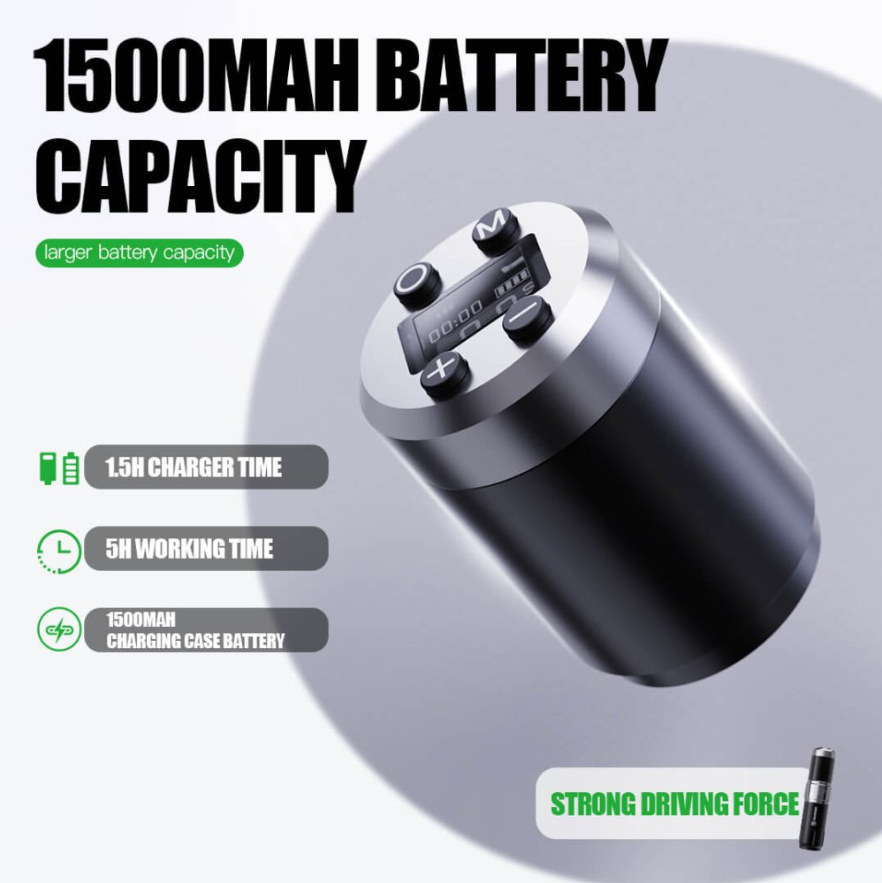 Dragonhawk Fold3 Wireless Tattoo Pen Machine is equipped with a coreless motor, the coreless motor suitable for all tattoo types. 1500mAh larger battery capacity works efficiently and keeps a strong driving force.