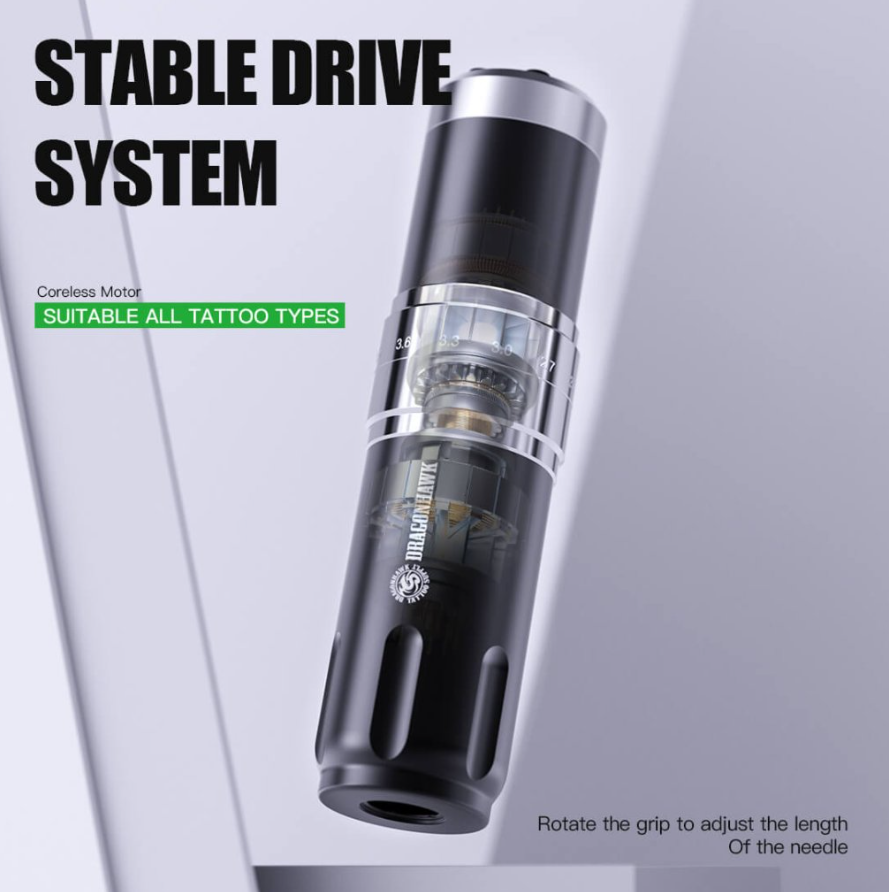 Dragonhawk Wireless Tattoo Pen Machine with 7 Stroke Lengths Fold3