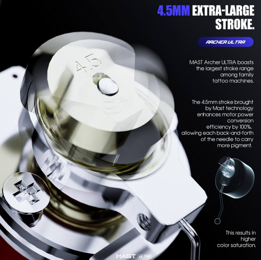 - The 4.5mm stroke brought by Mast technology enhances motor power conversion efficiency by 100%.