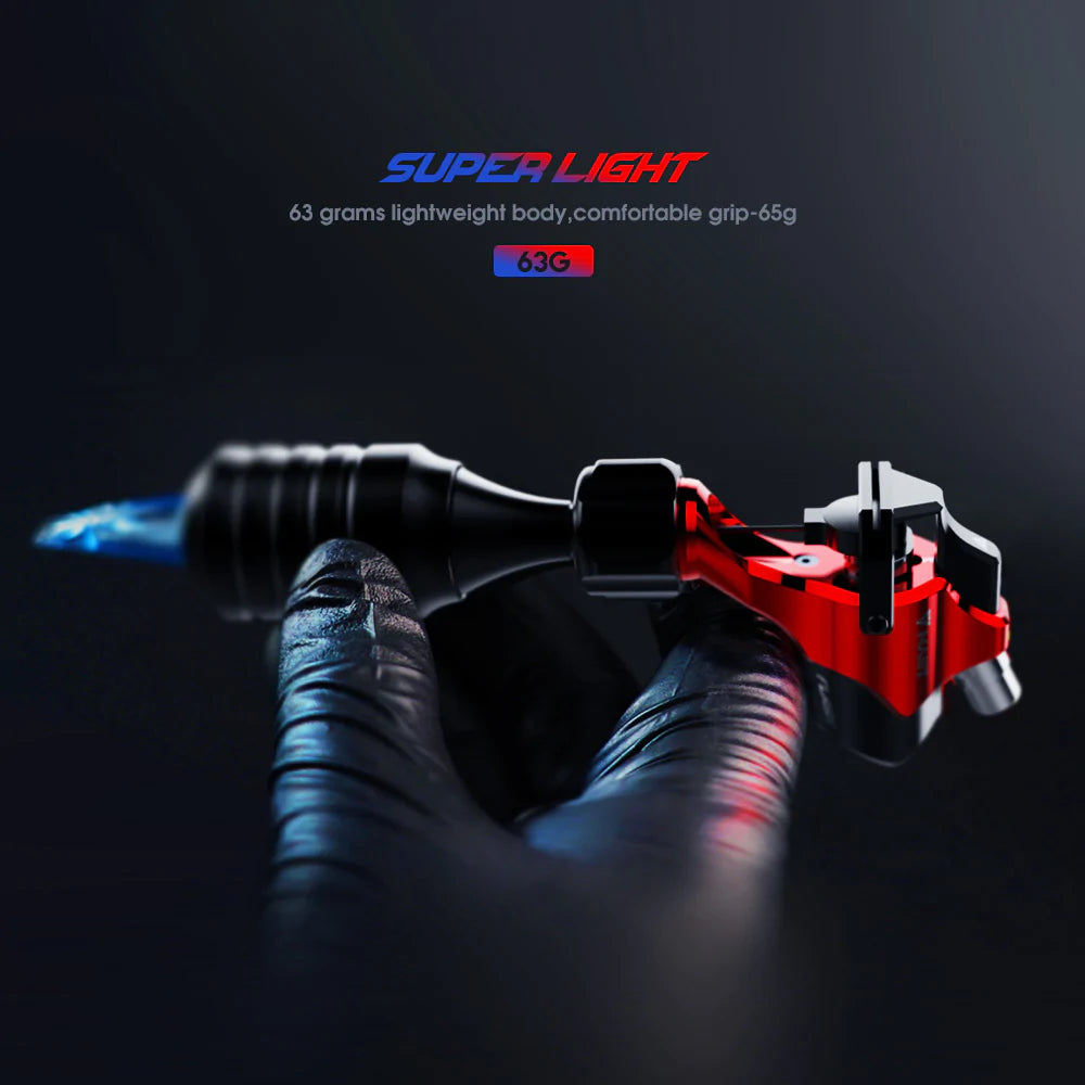 Create technology aesthetic machine,10V/9000Rpm medium frequency motor 3.5mm needle stroke Good transmission combination, suit for all style tattoos, New school,old school,Lining,Coloring,easy to use. Streamlined appearance, cool plating color 63 grams lightweight body,comfortable grip. Low friction and smooth bearing assembly, smooth,stable,low voice and long life Direct drive transmission design, the force is more direct high-elasticity steel torque transmission rod,increase the resilience and break the skin more easily Inclined RCA interface, high versatility,comfortable and convenient. If the color you choose is out of stock, we will send other colors random.