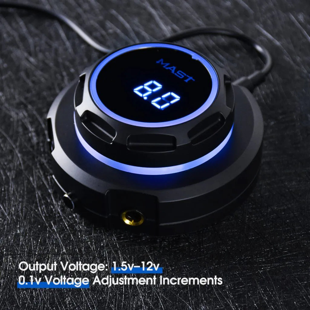 This Mast Halo tattoo power supply output voltage 1.5-12V and 0.1V voltage adjustment increments.2A current with protection against overvoltage and short circuiting.