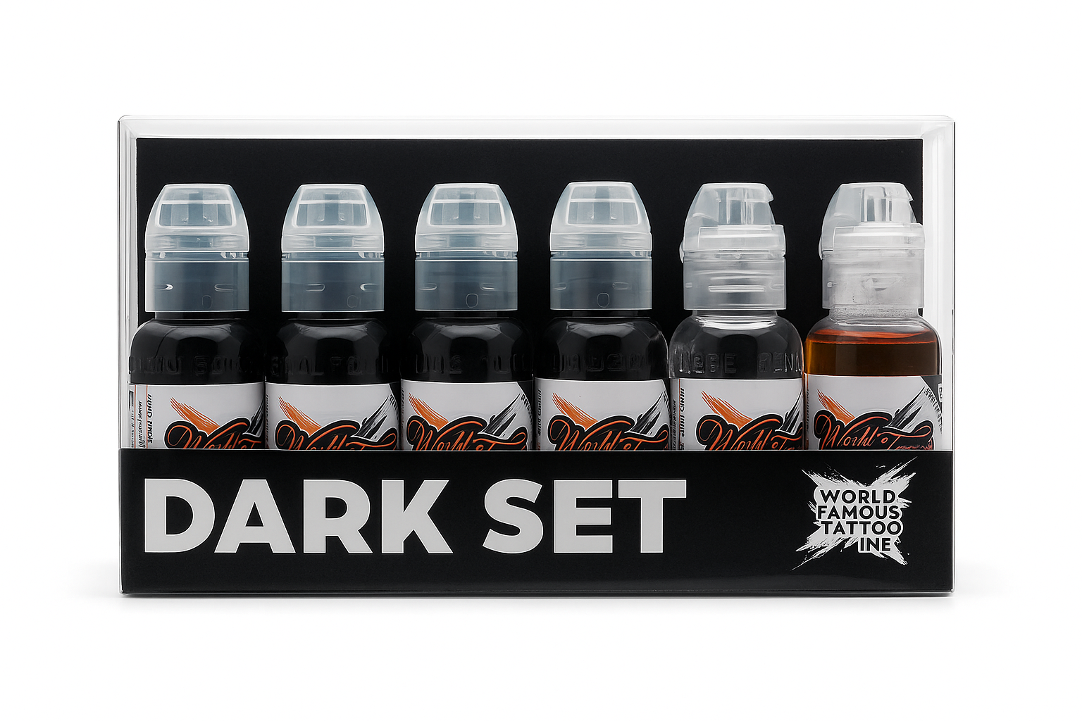 World Famous Tattoo Ink teamed up with black and grey realism specialist, Yarson, to craft Yarson’s Dark Set - (embrace your dark side). Yarson’s eye for detail and knowledge in black and grey work is reflected in his impeccably detailed realism pieces. This set is perfect for enhancing contrast and accomplishing strong saturation. Achieve a new level of boldness with Yarson’s Dark Set.